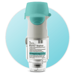 L'inhalateur RESPIMAT libère un nuage de médicament sans pulseur. L'activation se fait en appuyant sur un bouton conçu pour libérer une bouffée indépendamment de l'inspiration.